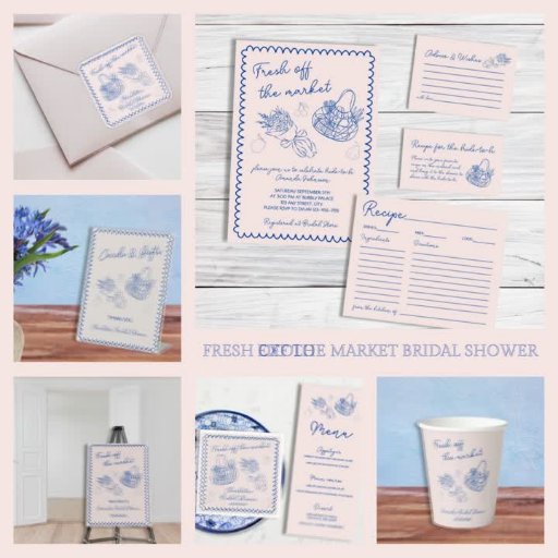 dd a whimsical touch to your bridal shower with our whimsical "Fresh Off the Market" stickers, designed to complement a charming farmers market theme. Featuring a beige and blue colour palette, this design showcases hand-drawn doodles of a grocery bag, flower bouquet, and playful fruits, all framed with a wavy scribble border. The handwritten font adds a personal, cosy feel, making these stickers perfect for sealing invitations, decorating party favours, or adding a unique flair to your event decor. Ideal for rustic, garden, or country-themed celebrations, these versatile stickers bring a stylish and cohesive look to your bridal shower. Create a delightful impression with this trendy, fun, and practical addition to your special day!