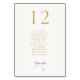 These lovely off white table seating card feature a lovely watercolor white ribbon and faux gold font. The design includes 10 guests per table, but design can allow for up to 12 guests max. The design is repeated at the back for easy visibility from all sides of the table. Add each sign with individual seating number to cart.