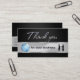 Silhouette of business people meeting together next to the world globe on a black carbon background with a noble and elegant silver metal ribbon. Business Thank You card "Thank you for your business".