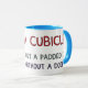 Wordart in bright colours saying "A cubicle is just a padded cell without the door", an a funny comic picture of a man working on a computer in a cramped office cubicle. The perfect office humour - for your desk, or as a gift for a co-worker.