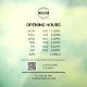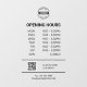 Simple business opening hours to personalise. Add your own text, business logo, QR code and contact info.