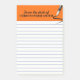 "From the desk of" followed by your name post its are perfect for school, varsity and office use. Organise and colour code your projects, study books and contracts with these easy to peel and stick white "post it" stationery accessories that have a fountain pen with ink set to the right of black templates on bright orange which have folio notepad horizontal lines in blue below it. IDEAL FOR - Contracts, agreements requiring a clients signature, as a check list of things to do or a daily organiser. CUSTOMIZE IT - Delete, change or personalise the wording