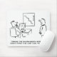 Office cartoon printed on a mouse mat. Man tells office co-worker that his turning the sales-chart sideways wasn't funny the first time he did it