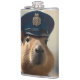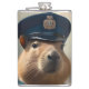 Officer Capybara: The Polite Protector", a diligent capybara stands proudly in a crisp policeman uniform, complete with a polished badge and a neatly placed hat perched on its head. The uniform fits snugly, accentuating its broad, furry shoulders while giving off a sense of authority and responsibility. With a calm but determined expression, Officer Capybara stands tall, ready to maintain peace and protect the community.