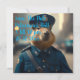 Officer Capybara: The Polite Protector", a diligent capybara stands proudly in a crisp policeman uniform, complete with a polished badge and a neatly placed hat perched on its head. The uniform fits snugly, accentuating its broad, furry shoulders while giving off a sense of authority and responsibility. With a calm but determined expression, Officer Capybara stands tall, ready to maintain peace and protect the community.