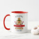 This charming mug features a delightful holiday design that is sure to bring a smile to your face with every sip. The mug showcases a cheerful gingerbread man, adorned with a green bow tie and a joyful expression, standing proudly on a vibrant red rolling pin. Surrounding the gingerbread man are festive candy canes, adding a touch of holiday magic. The playful text "OFFICIAL COOKIE TESTER" is prominently displayed, with the word "COOKIE" creatively incorporating star-shaped cookies as the letter "O". To make it even more special, you can personalise the mug by adding a custom name that gently curves above the gingerbread man, simply by clicking "Personalise this template". This mug is perfect for anyone who loves baking, Christmas, or simply enjoys a fun and festive drinkware collection. It makes a wonderful gift for family, friends, or colleagues who take pride in their cookie-tasting skills or want to add a whimsical touch to their holiday celebrations. Whether you're enjoying a hot cocoa by the fireplace, sipping coffee during a cosy morning, or indulging in a warm cup of tea, this mug is sure to enhance your holiday experience and spread holiday cheer.