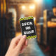 "OFFICIAL DOG WALKER"; Black, Yellow Stripes Badge ID Badge