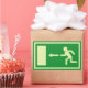 Sticker of the official symbol used to point towards emergency (fire) exits in Europe. (facing left)