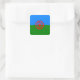 Official Romany gypsy traveller flag of green and blue representing the earth and sky with a red wagon wheel, representing travel. Personalise this design by deleting or changing the text.