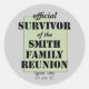 Customise stickers with your family's name, date and the location for your next family reunion. Hand out to everyone who's there! Maybe especially the organizers!