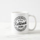 A funny retirement mug that features a black and white modern typography text with custom YEAR of retirement! perfect birthday gift for him, dad, husband, mum, wife, grandpa, grandma, a member of family, coworker or a firend.