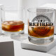 Elevate any retirement celebration with our custom whiskey rock glass. Featuring the words “Officially Retired”, personalise further with a custom name and the retirement year. The elegant Greek key circular detail adds a touch of sophistication. Toast to a well deserved retirement with this unique and thoughtful keepsake. Cheers to new beginnings! All text is editable. Edit from the product page or to change font style or colour, use the design tool.
