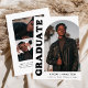 Stylish and trendy graduation announcement featuring the graduate's photo on the front with an offset arch photo frame. "Graduate" is displayed in bold black retro lettering on a white background. Personalise the front of the arch photo graduation announcement by adding the graduate's name, school, and graduation year. The card reverses to display an additional 3 photos with space for custom text such as future college plans, career plans, graduation party details, etc. The black and white graduation announcement is perfect for both high school and college graduates.