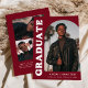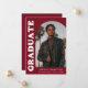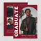 Stylish and trendy graduation announcement featuring the graduate's photo on the front with an offset arch photo frame. "Graduate" is displayed in bold white retro lettering on a maroon/burgundy background. Personalise the front of the arch photo graduation announcement by adding the graduate's name, school, and graduation year. The card reverses to display an additional 3 photos with space for custom text such as future college plans, career plans, graduation party details, etc. The burgundy graduation announcement is perfect for both high school and college graduates.