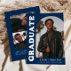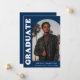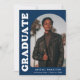 Stylish and trendy graduation announcement featuring the graduate's photo on the front with an offset arch photo frame. "Graduate" is displayed in bold white retro lettering on a navy blue background. Personalise the front of the arch photo graduation announcement by adding the graduate's name, school, and graduation year. The card reverses to display an additional 3 photos with space for custom text such as future college plans, career plans, graduation party details, etc. The navy blue graduation announcement is perfect for both high school and college graduates.