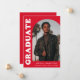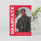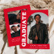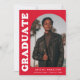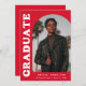 Stylish and trendy graduation announcement featuring the graduate's photo on the front with an offset arch photo frame. "Graduate" is displayed in bold white retro lettering on a red background. Personalize the front of the arch photo graduation announcement by adding the graduate's name, school, and graduation year. The card reverses to display an additional 3 photos with space for custom text such as future college plans, career plans, graduation party details, etc. The red graduation announcement is perfect for both high school and college graduates.