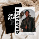 Stylish and trendy graduation party invitation featuring the graduate's photo on the front with an offset arch photo frame. "Graduate" is displayed in bold black retro lettering on a white background. Personalise the front of the arch photo graduation party invitation by adding the graduate's name, school, and graduation year. The invite reverses to display your graduation party details. The white and black graduation party invitation is perfect for both high school and college graduates.