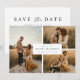 Our save the date card features an offset photo grid and modern script lettering for the perfect way to share your engagement photos and wedding date with family and friends.