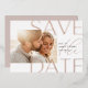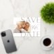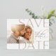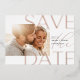 Announce your wedding date with these beautiful, modern save the date cards featuring a horizontal or landscape orientated photo with "save the date" overlaid in rose gold foil lettering. Personalise with your names, wedding date, and location.