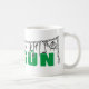 Oggun mug with achaba. Name of Oggun in text with cowrie design. Printed colours green and grey.