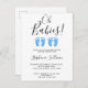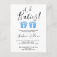 This stylish twin baby boys baby shower invitation postcard is decorated with modern typography and cute watercolor baby's feet in pastel blue.