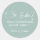 Add a soothing and stylish touch to your baby shower with these classic round stickers. The Oh Baby design features a cute bear drawing as the letter "O," paired with the heartfelt message "Thanks for showering our baby with love," accented by a heart symbol for "love." With a customisable space for the parents' names, these stickers add a personal touch to your celebration. Set against a soft blue sage green background, these stickers bring a serene and elegant charm to your favours or envelopes.