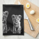 Oh Baby Big Cat Grey Cub Black Tea Towel