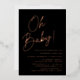 Simple baby shower invitations featuring "Oh Baby!" displayed in a bold rose gold foil script with a black background. Personalise the minimalist baby shower invitations with the mother's name and shower details. The black and rose gold foil baby shower invitations are perfect for gender-neutral baby showers!