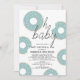 This cute " Oh baby " boy baby shower by mail invitation features a white background with doughnuts with turquoise blue / mint green icings and sprinkles. The reverse side features a white background with turquoise blue / mint green stripes. Personalise for your needs. You can find more matching products at my store.
