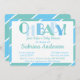 Modern yet Whimsical, this adorable OH BABY! baby shower invitation is done in shades of blue with an accent of green - matching diagonal Stripes on the back