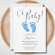 They are decorated with modern typography and cute hand painted watercolor baby's feet in pastel blue.