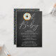 These cute doughnut baby shower invitations are perfect for anyone having a baby shower this year. The design features a trendy chalkboard background with sprinkles and a modern script "Oh Baby" doughnut and easy to personalise template wording.