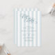 Elegant blue and white striped all-in-one baby shower invitations with a double-sided design offer a stylish and coordinated way to celebrate a baby boy on the way. The front showcases soft pastel blue vertical stripes with a crisp white background, beautifully paired with graceful script for the “Oh Baby” heading and refined serif text for the event details. The back continues the cohesive look, featuring sections for RSVP information, a heartfelt “Books for Baby” poem encouraging guests to bring a special book, and a charming “Diaper raffle” invitation for a fun and practical shower activity. Perfect for traditional boy baby showers, this all-in-one invitation design combines beauty, functionality, and sentimental touches, creating a polished and memorable keepsake for guests. Available as printed cards or an instant digital download.