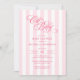 Elegant pink and white striped baby shower invitation cards for a baby girl offer a timeless design perfect for celebrating a new arrival. Featuring soft pastel pink vertical stripes on a crisp white background, the layout highlights graceful serif and script fonts that create a sophisticated and heartwarming presentation. The classic “Oh Baby” calligraphy header draws attention immediately, while the well-balanced typography beneath clearly outlines all the event details. This customisable design exudes charm and simplicity, making it ideal for traditional baby showers or gender-specific celebrations. Perfect for those seeking refined baby shower invitations with soft pink themes and minimalist design elements. Available as printed cards or an instant digital download.