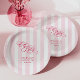 Pink and white striped "Oh Baby" baby shower paper plates are a beautiful and feminine choice for a girl baby shower, featuring a soft pastel pink background with elegant vertical stripes and a graceful script font. The delicate design is accented by customisable text, making it easy to personalise for any baby girl celebration. Ideal for traditional, sweet, or vintage-themed baby showers, this classic colour scheme adds a touch of charm and coordination to your event décor. These stylish plates elevate your baby shower tableware with a blend of sophistication and celebration, perfectly suited for welcoming a baby girl.