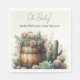 Add a rustic and charming touch to your baby shower with this beautifully designed napkin featuring a watercolor-style illustration of cacti and succulents arranged in and around a wine barrel. The soft, earthy tones and botanical details create a warm and welcoming atmosphere—perfect for a desert-themed or nature-inspired celebration.