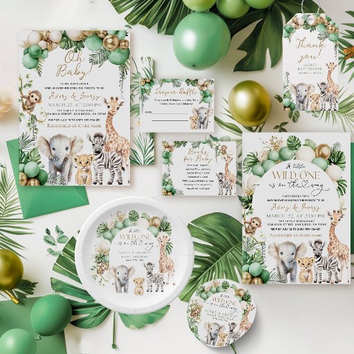 Safari Animal Tropical Green Wild One Baby ShowerDesigned by Katerina Shramenko