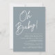 Oh Baby Script Dusty Blue Minimalist Baby Shower Invitation
