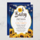 Oh Baby Shower Rustic Sunflowers & String Lights Navy Blue Invitations.