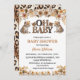 Oh baby, tropical flowers, leopard boy or girl baby shower Invitation. The back is a large print leopard skin background. This invitation is for a new pregnant mama to her baby shower party.