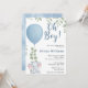 "Oh Boy" Elephant Eucalyptus Blue Balloon Baby Shower Invitation | Cute Greenery Safari Boy Invite