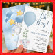 oh boy elephant eucalyptus, blue balloon baby invite, cute greenery safari boy, elephant baby shower invite, eucalyptus baby boy shower, personalised elephant invite, blue elephant baby shower, greenery balloon baby, oh boy safari invite, baby elephant eucalyptus