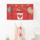 This adorable birthday banner is sure to be the talk of the party! A red shimmering background with gloved "mouse" hands in the shape of a heart, surrounded by balloons, stars, and party bunting.