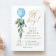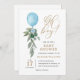 Eucalyptus Greenery Blue Balloon Boy Baby Shower Invitation.