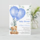 Oh Boy Blue Balloons Cute Bear Baby Boy Shower Invitation