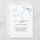 An elegant white background, decorated with blue bow. Personalise and add a name and party details.
