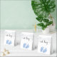 Cute party favour box for your baby boy shower featuring "oh boy" in a stylish script with swashes and a blue watercolor of baby feet. Underneath the flap you can easily personalise with the mother-to-be's name and shower date.