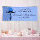 Surprise Mum to be with this adorable keepsake banner she will have from her baby shower. Also great decoration as well. It has a light blue background & on left side is a dark with light blue burst pattern. There's a blue hat, black moustache, and a blue and black striped tie on left side of banner. Personalise with name, date, or however you choose. Check our store for collection with matching stamps, invitations, stickers, napkins, and much more.
