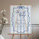 Cute and modern "Oh Boy" baby shower sign featuring dusty blue and white stripes, a hand drawn wavy frame, and a blue ribbon in frosted white acrylic. A simple yet whimsical welcome sign, perfect for a mum-to-be who wants an elegant shower without compromising the sweet and fun element of her joyous celebration.