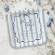 Cute and modern "Oh Boy" baby shower invitation featuring dusty blue and white stripes, a hand drawn wavy frame, and a blue ribbon. A simple yet whimsical invite, perfect for a mum-to-be who wants an elegant shower without compromising the sweet and fun element of her joyous celebration.